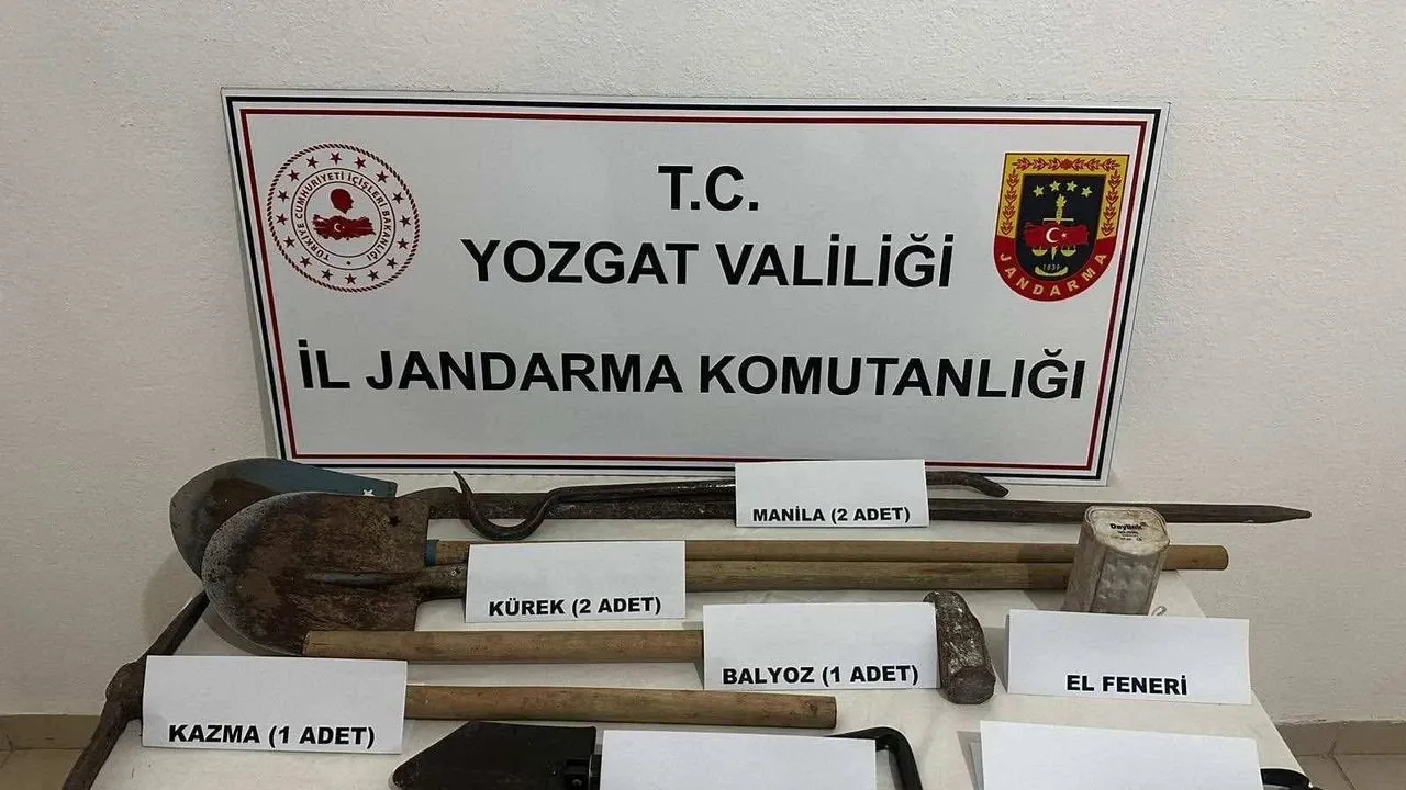 Yozgat'ın Akdağmadeni ilçesinde izinsiz kazı yapan 2 zanlı gözaltına alındı.