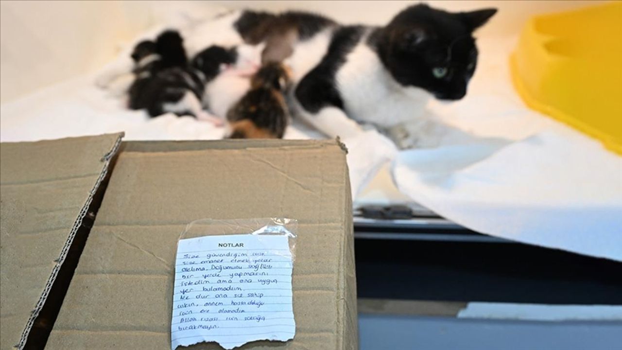 İstanbul'da özel veteriner kliniğinin kapısına karton kutuda bir notla bırakılan ve burada tedavi edilip suni sancı ile doğum yapması sağlanan hamile kedi, yavruları sütten kesildikten sonra sahiplendirilecek.