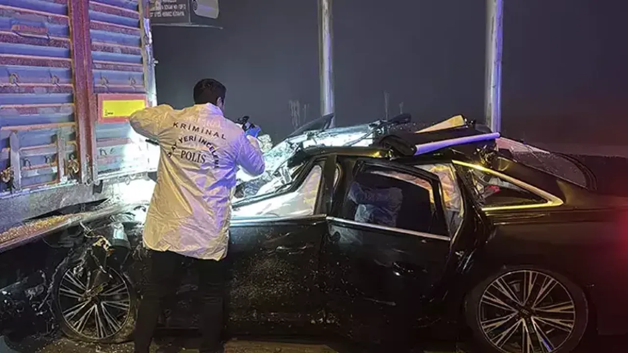 Veli Yücel (36) idaresindeki 43 AB 560 plakalı otomobil, kırmızı ışıkta bekleyen 43 ACV 217 plakalı küspe yüklü TIR'a arkadan çarptı. Çevredekilerin ihbarı üzerine olay yerine çok sayıda sağlık, polis ve itfaiye ekibi sevk edildi. Sağlık ekiplerinin yaptığı kontrollerde otomobil sürücüsü Veli Yücel ile yanındaki Fas uyruklu Badra El Alaoui (20) adlı kadın ile birlikte kimliği henüz tespit edilemeyen 2 kişinin hayatını kaybettiği belirlendi.