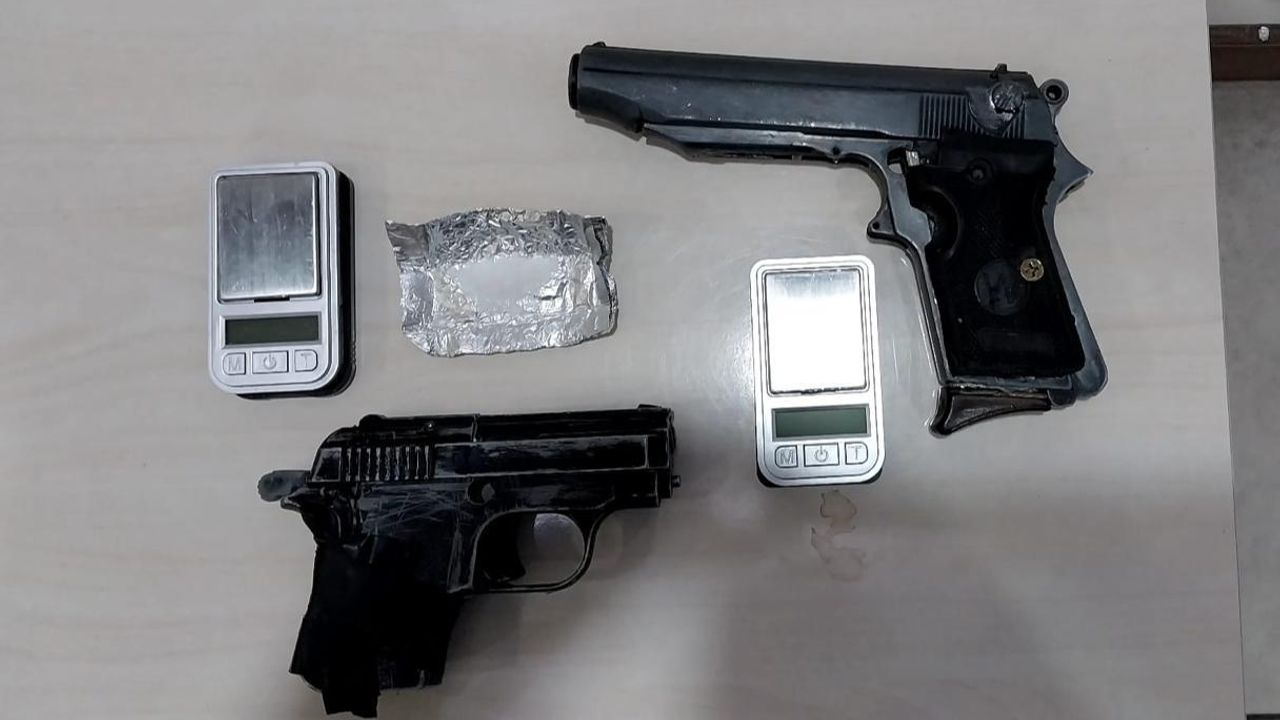 Aramada, 0,97 gram sentetik uyuşturucu, 2 tabanca ve 2 hassas terazi ele geçirildi.