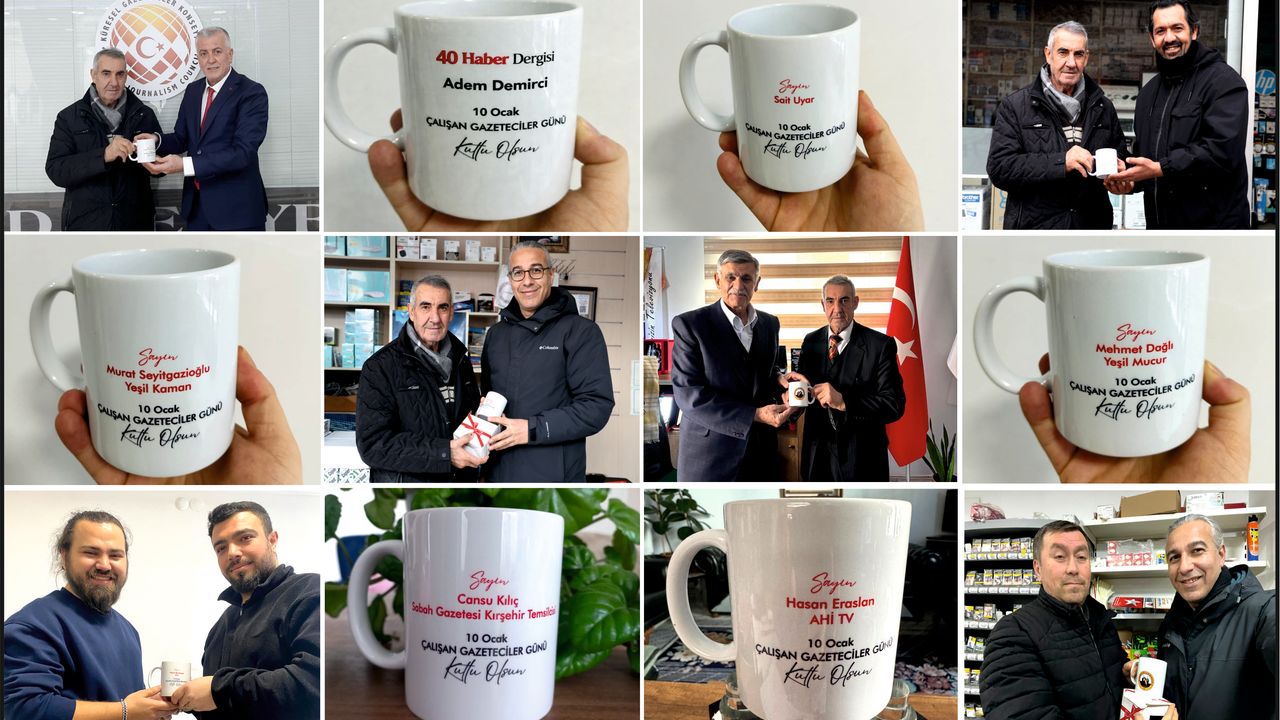 Kırşehir Basın Konseyi Başkanı Sait Yanık, 10 Ocak Çalışan Gazeteciler Günü dolayısıyla kentte görev yapan yazılı ve görsel medyaya anlamlı bir sürpriz yaptı. Yanık, her bir basın mensubunun ismine özel olarak hazırlanan kupa bardakları tek tek teslim ederek, bu özel günde gazetecilerin emeklerine dikkat çekti.