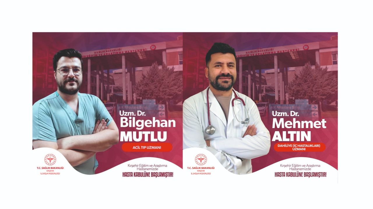 Kırşehir Eğitim ve Araştırma Hastanesi, uzman kadrosunu iki yeni hekimle güçlendirdi. Acil Tıp Uzmanı Uzman Doktor Bilgehan Mutlu, hasta kabulüne başlarken; Dahiliye (İç Hastalıkları) Uzmanı Uzman Doktor Mehmet Altın da görevine başladı.