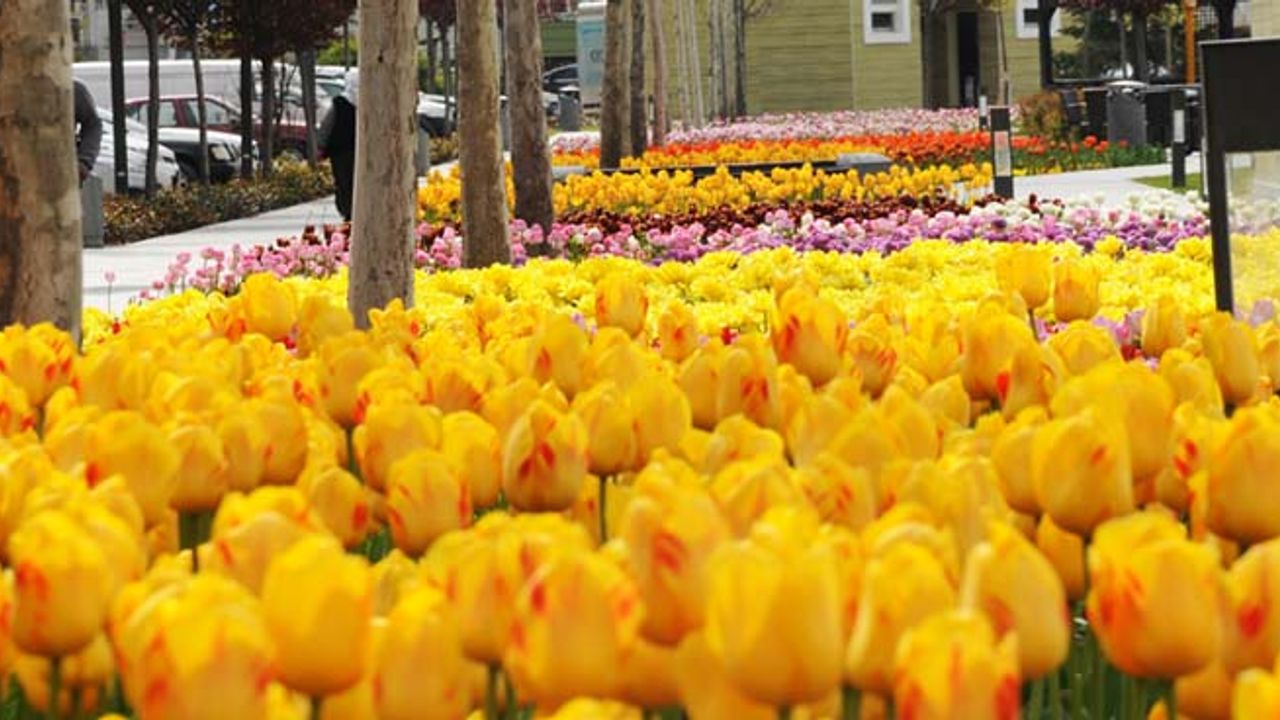 Sonbaharda 230 bin adet lale soğanı, 400 bin adet hercai menekşe, toprakla buluşturulmuştu.