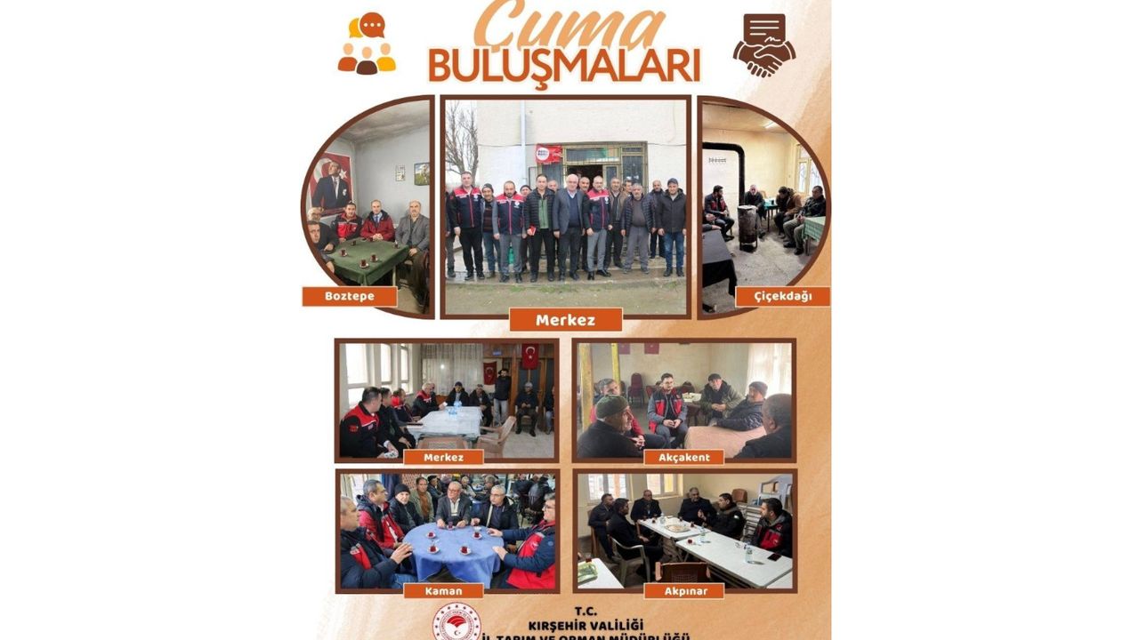 Kırşehir Tarım ve Orman Müdürlüğü tarafından yürütülen “Cuma Buluşmaları” programı kapsamında üreticilerle sahada bir araya gelinmeye ve istişareler sürdürülmeye devam ediliyor.