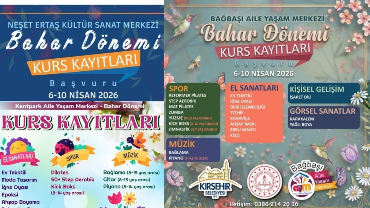 Kırşehir Belediyesi’nin sosyal belediyecilik anlayışıyla düzenlediği ücretsiz kurslar, bahar döneminde de vatandaşlarla buluşuyor. Neşet Ertaş Kültür Sanat Merkezi ve Bağbaşı Aile Yaşam Merkezi’nde kurs kayıtları 6 Nisan’da başlarken, Kentpark Aile Yaşam Merkezi’nde kayıtlar 7 Nisan’da başladı.