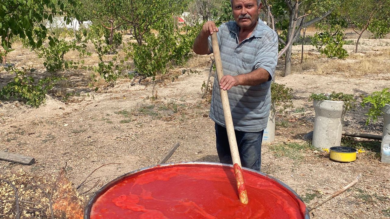 Kırşehir’de yazın son günleriyle birlikte geleneksel salça kaynatma dönemi başladı. Bahçelerde kurulan kazanlarda domates ve biber kaynatılarak kışlık salçalar hazırlanıyor. Süleyman Köksal da kendi bahçesinde salça kaynatmaya başladığını belirterek, domatesin çektirme dahil kilosunun 13 TL, biberin ise 25-30 TL arasında değiştiğini söyledi.