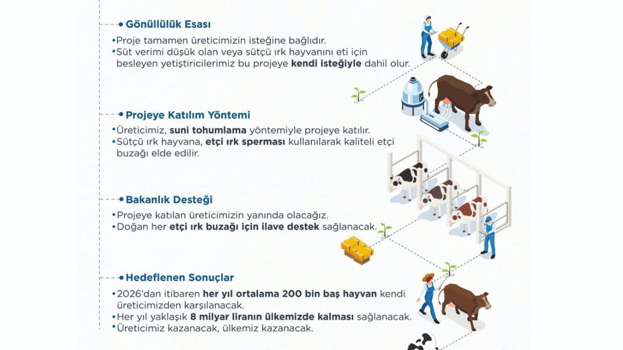 Proje tamamen gönüllülük esasına dayanıyor. Sütçü ırk hayvanlarını et amacıyla besleyen üreticiler, projeye kendi istekleriyle dahil olabiliyor. Katılım, suni tohumlama yöntemiyle gerçekleşiyor. Bu kapsamda sütçü ırk hayvanlara etçi ırk sperması kullanılarak daha kaliteli etçi buzağılar elde edilmesi hedefleniyor.