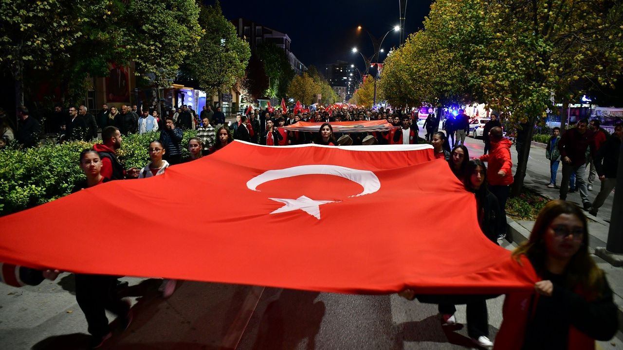 Meşaleler eşliğinde yürüyen vatandaşlar, ellerinde Türk bayraklarıyla Cumhuriyet coşkusunu hep birlikte yaşadı. Yürüyüş güzergâhı boyunca marşlar söylendi. Cacabey Meydanı’nda bulunan Atatürk Anıtı önünde son bulan yürüyüş saygı duruşu ve İstiklal Marşı’nın okunmasıyla son buldu.