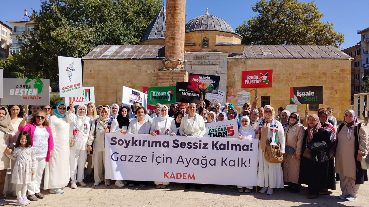 AK Parti Kadın Kolları'nın çağrısıyla Kırşehir’de düzenlenen “Gazze için sessiz çığlık” yürüyüşünde kadınlar el ele vererek zulme karşı sessiz duruş sergiledi.