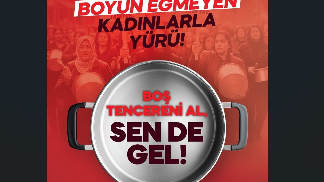 Kaya, “Türkiye Yüzyılı boş tencere yüzyılı oldu. Artık yeter. Güvencesiz iş gücüne, görünmeyen emeğe, gelirde adaletsizliğe, hayır diyorsan boş tencereni al, sen de gel. 17 Ekim Cuma saat 17.00’de 81 ilde aynı sesle haykırıyoruz. Dayatılan bu yoksulluğa boyun eğmiyoruz” ifadelerine yer verdi.