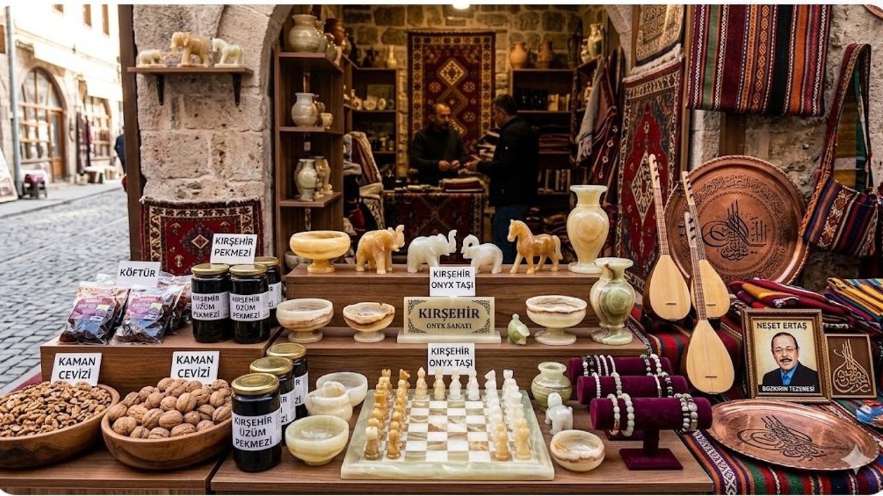 Ziyaretçiler için Kırşehir’den alınacaklar listesi Onyx ile sınırlı kalmıyor. Kaman cevizi, Kırşehir pekmezi, üzüm ürünleri, çörek ve tandır ekmeği, Neşet Ertaş ve Abdallık geleneği temalı hediyelikler ile Ahi Evran kültürünü anlatan objeler de tarih ve müzik meraklıları için anlamlı seçenekler sunuyor.