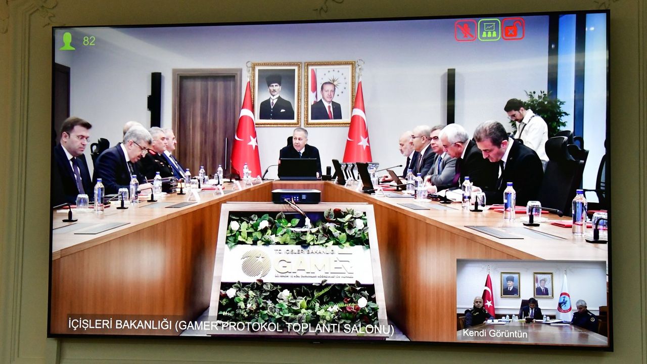 İçişleri Bakanı Ali Yerlikaya, toplantıda illerde yürütülen güvenlik çalışmalarına ilişkin değerlendirmelerde bulunarak, kamu düzeninin korunması, vatandaşların huzur ve güvenliğinin sağlanması için yürütülen operasyonların kararlılıkla sürdürüleceğini vurguladı.