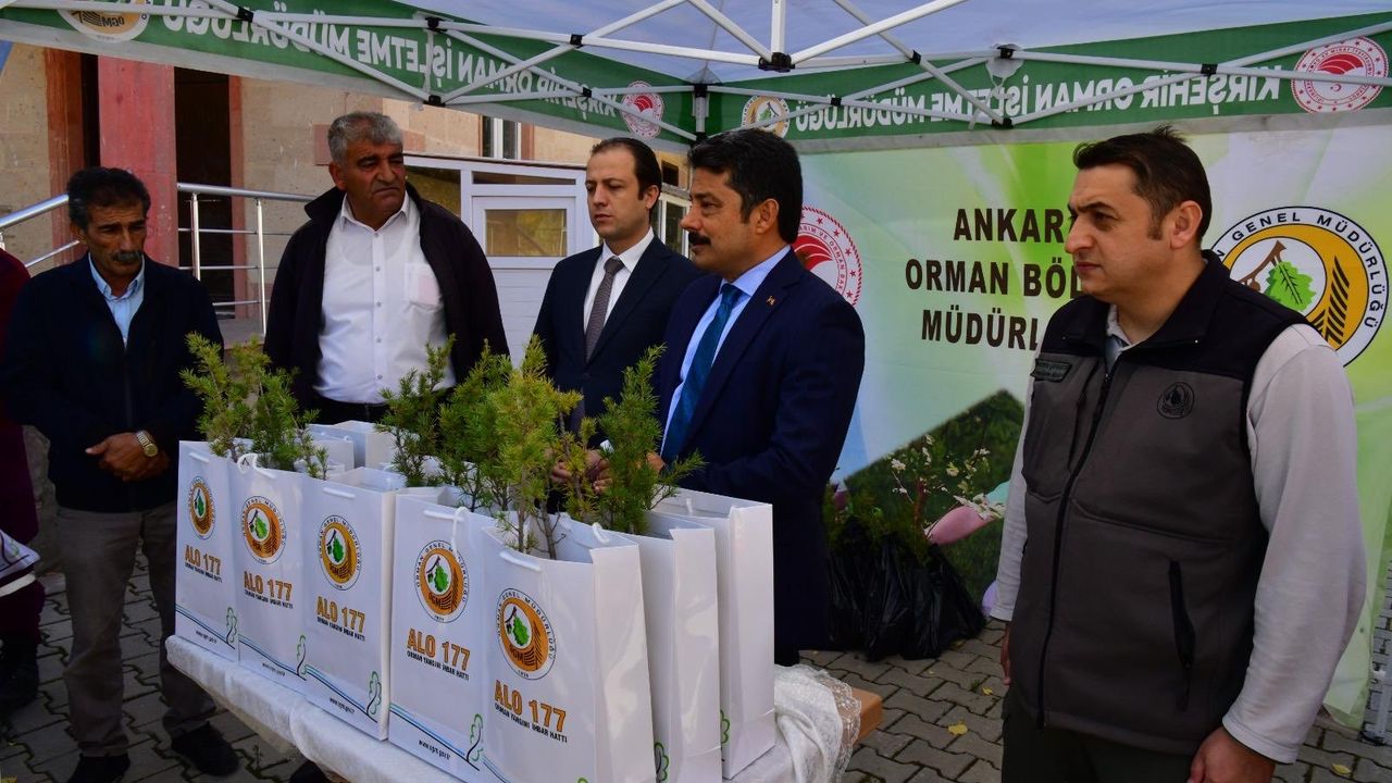 Kırşehir Valisi Murat Sefa Demiryürek ve beraberindekiler köy meydanında Orman İşletme Müdürlüğü tarafından temin edilen fidanları dağıtarak köye nefes oldular.
