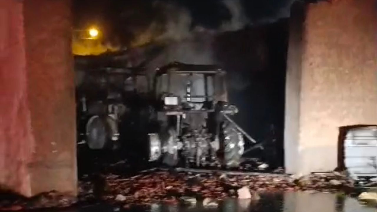 Yangında, garajda bulunan 2 traktör römorklarıyla birlikte tamamen yanarak kül olurken, çok sayıda tarım aleti de kullanılamaz hale geldi. Garajda büyük çapta maddi hasar meydana geldi.