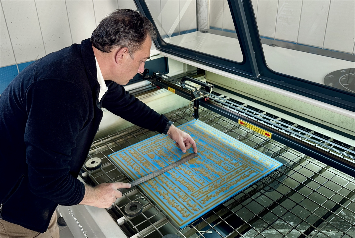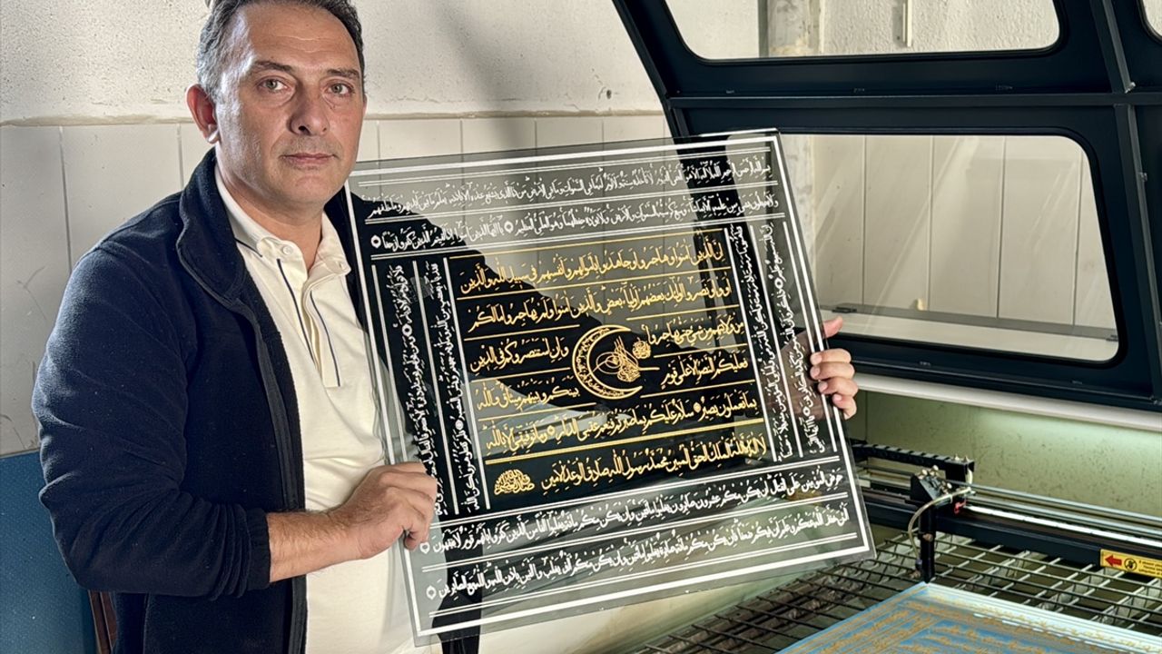 Makine teknolojisi öğretmeni İbrahim Aksoy, 7 ay süren çalışmayla Ahi Sancağı'nı kazıma yöntemiyle cama işledi.