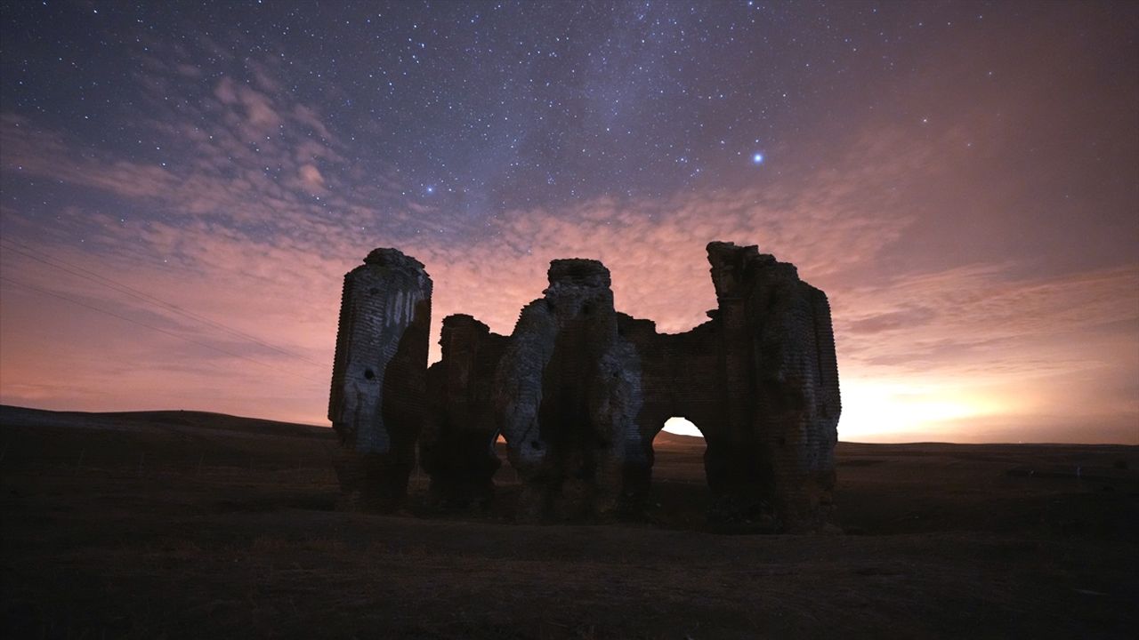 1938 Kırşehir depreminde yıkılan ve günümüze kalan bazı kalıntıları ile bugüne şahitlik eden tarihi yapı, gece saatlerinde yıldızlarla bütünleşen görüntüsüyle dikkat çekti.