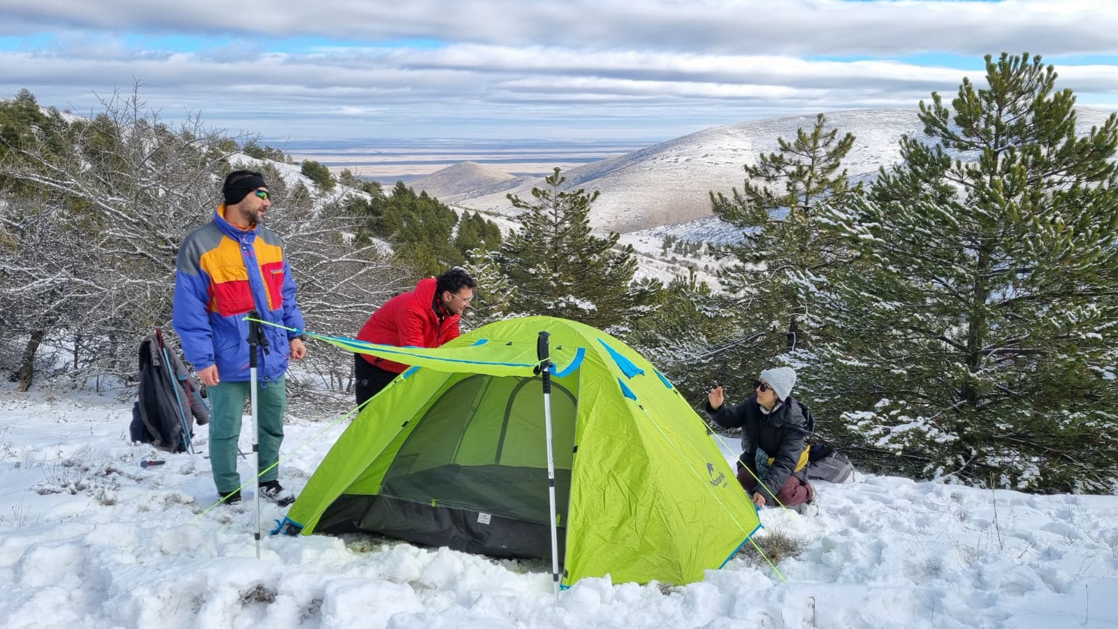 Kırşehir il merkezinde sabah saat 08.30’da toplanan doğa sporları kulübü üyeleri, minibüsle Boztepe Çeşmesi mevkisine ulaştı. Burada yapılan kısa teknik bilgilendirmenin ardından yürüyüşe geçen dağcılar, karla kaplı ve yer yer ormanlık alanda yaklaşık 2 saat süren bir tırmanışla kamp kuracakları alana vardı.