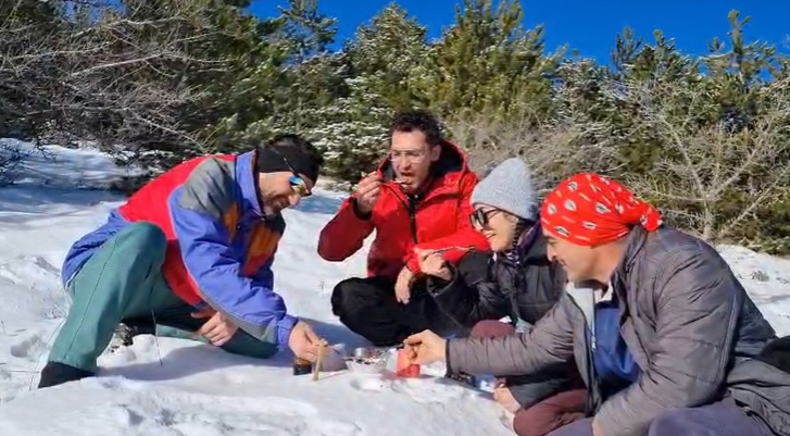 Etkinlikte dikkat çeken anlardan biri de dağcıların kar üzerinde Kırşehir pekmeziyle yaptığı tatlı molası oldu. Kar üzerine dökülen pekmez, hem enerji verdi hem de ortaya renkli görüntüler çıkardı.