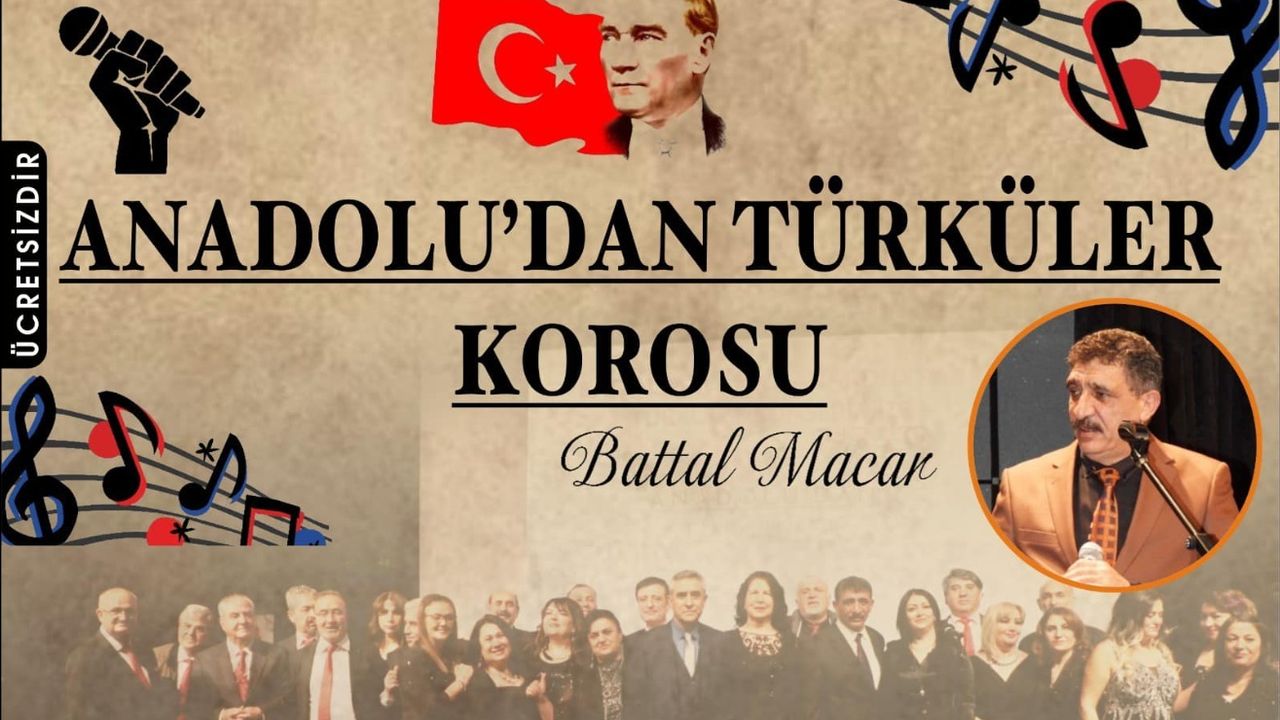 Anadolu'dan Türküler Korosu Konseri 23 Şubat'ta Kırşehirliler ile buluşacak. Anadolu'dan Türküler Korosu’nun Battal Macar ile gerçekleştireceği Türkü Gecesi, 23 Şubat 2025 Pazar günü saat 19:00’da Neşet Ertaş Kültür Sanat Merkezi’nde gerçekleştirilecek. Kırşehir Neşet Ertaş Kültür Sanat Merkezi’nde düzenlenecek olan Türkü Gecesi ücretsiz olarak Kırşehirliler ile buluşacak. Konserde birbirinden güzel Türküler dinleyicilerle buluşacak.