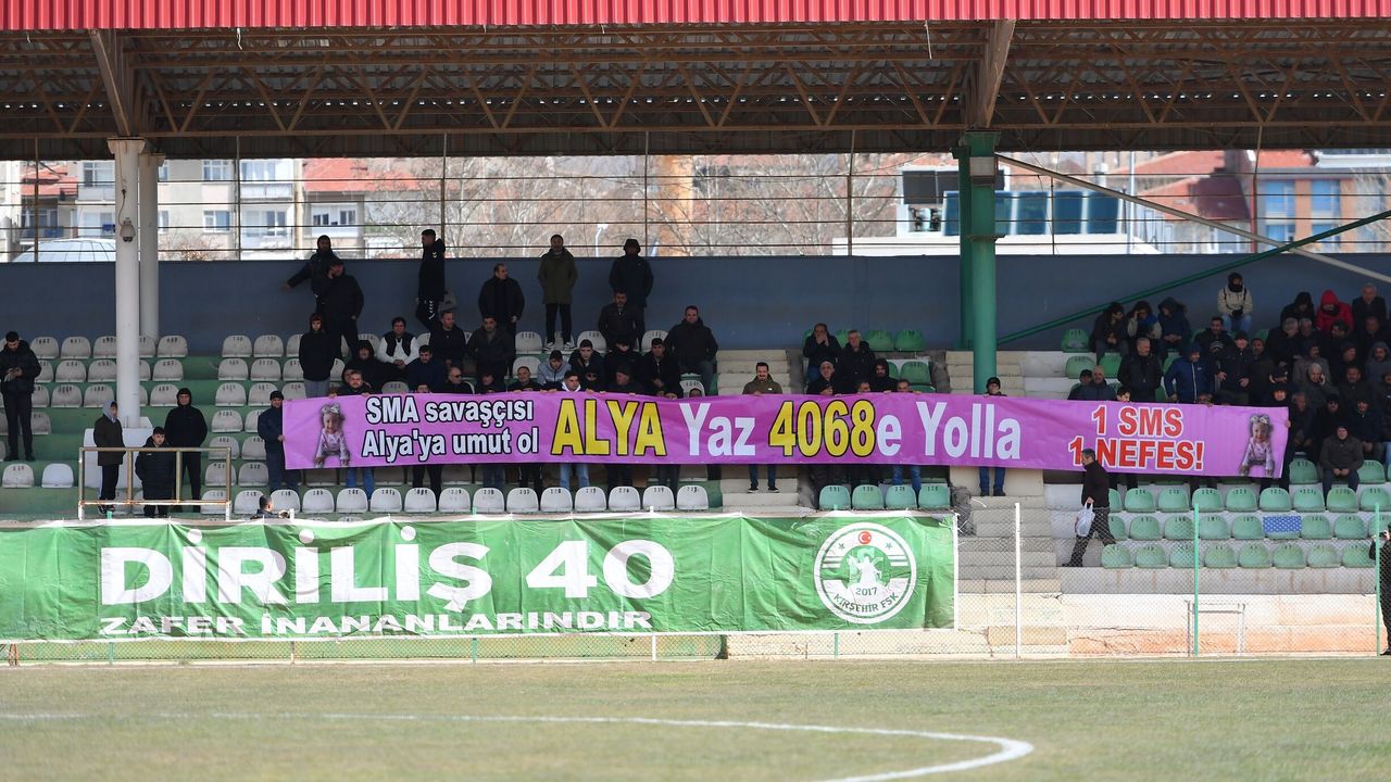 Ahi Stadyumu’nda oynanan karşılaşma öncesi tribünlerde toplanan Kırşehirspor taraftarları, SMA hastalığı ile mücadele eden Alya bebeğe destek olmak amacıyla pankart açtı. Taraftarların açtığı pankartta “SMA savaşçısı Alya’ya umut ol, ALYA yaz 4068’e yolla. 1 SMS 1 nefes!” ifadeleri yer aldı.
