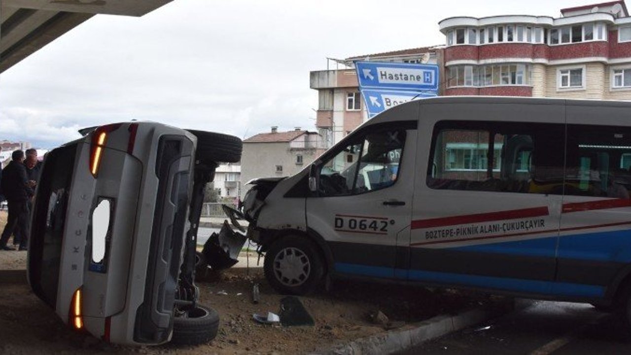 Meydana gelen kazada SUV devrildi, sürücüler ve yolcular hastaneye kaldırıldı.