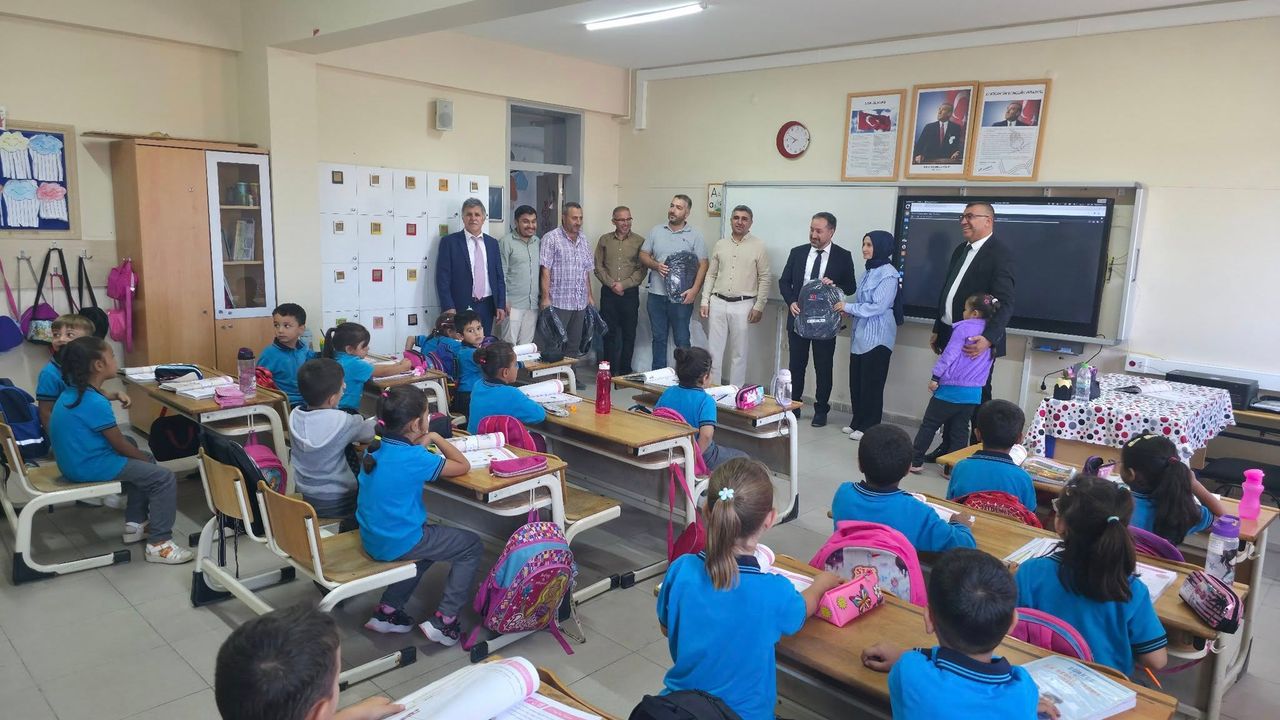Karlı ve beraberindeki Eskil İlçe Milli Eğitim Müdürü İbrahim Kılıçer, Şehit Muhammet Uz İlkokulu'nu ziyaret ederek öğrencilerle bir araya geldi.