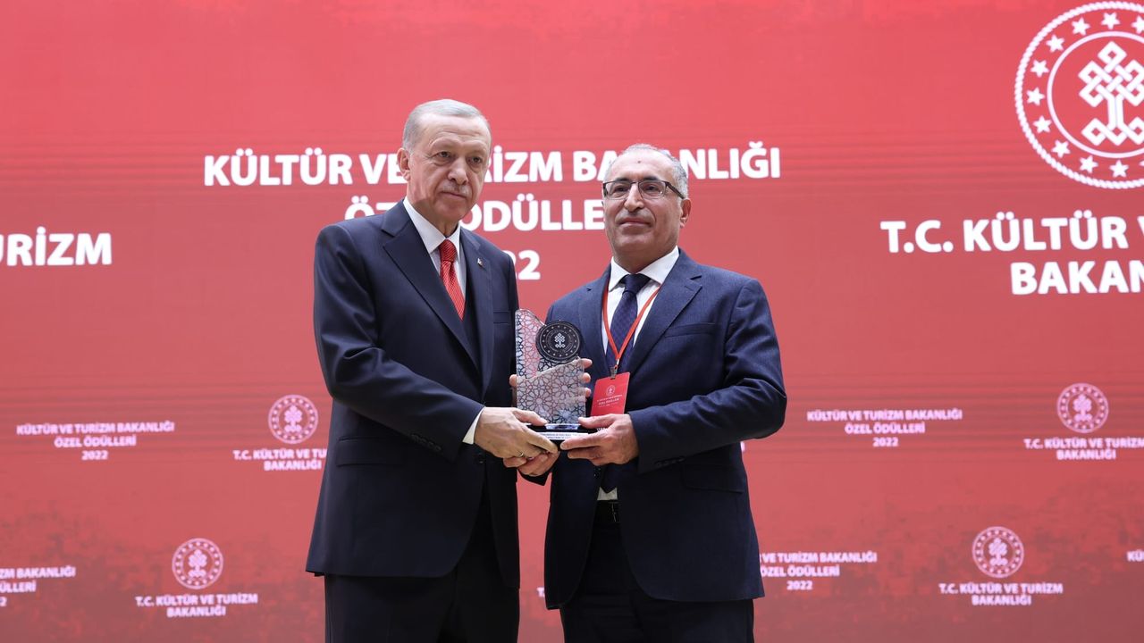 Türkiye Cumhuriyeti Cumhurbaşkanı Recep Tayyip Erdoğan’ın teşrifleri ile Cumhurbaşkanlığı Senfoni Orkestrası Tarihi Binası’nda düzenlenen törende, ödül vakıf yönetimini temsilen Ahi Kültürünü Araştırma ve Eğitim Vakfı Başkanı, hemşehrimiz Av. Eyüp Arıcan’a, Türkiye Cumhuriyeti Cumhurbaşkanı Recep Tayyip Erdoğan tarafından verildi.