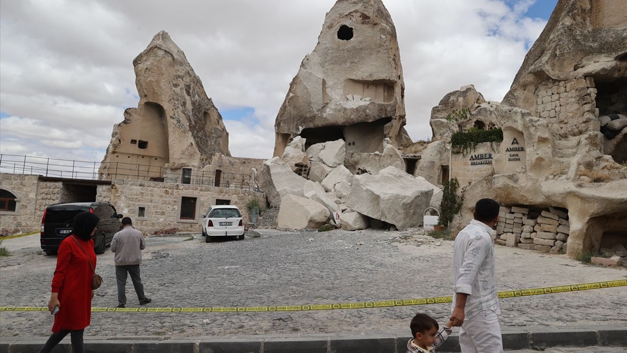 Nevşehir'in Göreme beldesindeki peribacasında çökme meydana geldi.