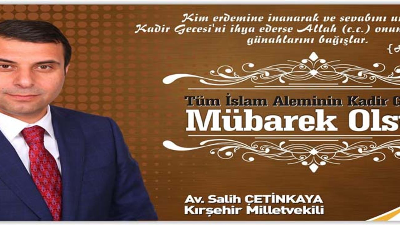 Bu mübarek gecenin kalplerimize ve gönül dünyamıza ışık saçması ve huzur getirmesi temennisinde bulunan Milletvekili Salih Çetinkaya, “Ülkemiz ve gönül coğrafyamız olmak üzere tüm İslam aleminin Rabbine ellerini açıp dua ettiği on bir ayın sultanı Ramazan-ı Şerif’in içerisinde saklı, bin aydan daha hayırlı mübarek Kadir Gecenizi tebrik ediyorum. İnsanlığa bir rahmet kapısı, bir umut pınarı olan pek çok hikmeti ve rahmeti bünyesinde barındıran, birliğin, dayanışma ve kardeşlik duygularının yoğunlaştığı mübarek Ramazan-ı Şerif'in son günlerine yaklaşırken, Kadir Gecesi'ni idrak etmenin heyecanını yaşıyoruz. Kadir Gecesi, alemlere rahmet olarak gönderilen Kur'an-ı Kerim'in yeryüzüne indirildiği gün olması bakımından kutsal bir öneme sahiptir. Bu mübarek gecenin hepimizin kalplerine, gönül dünyamıza ışık saçmasını, huzur getirmesini temenni ediyorum. Bu kutsal gecenin tüm dünyada akan kan ve gözyaşların durmasına, bütün kardeşlerimizin bayrama huzur ve güven içerisinde ulaşmasına vesile olmasını diliyorum. Bu duygu ve düşüncelerle başta ülkemiz ve gönül coğrafyamız olmak üzere bütün İslam âleminin hemşehrilerimin mübarek Kadir Gecelerini en güzel dilek ve duygularla tebrik ediyor; Kadir Gecesi’nin feyz ve bereketinden hepimizin nasiplenmesini, dua ve niyazlarımızın kabul olmasını, Ramazan Bayramına da sağlık, afiyet içerisinde huzur ve mutlulukla erişebilmeyi Cenab-ı Hak’tan niyaz ediyorum” dedi.