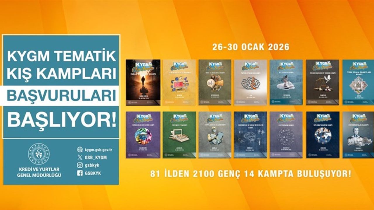 Kredi ve Yurtlar Genel Müdürlüğü (KYGM) tarafından gençlerin akademik ve entelektüel birikimlerini artırmak amacıyla düzenlenen geleneksel kış kamplarının bu yıl onuncusu, 26-30 Ocak 2026 tarihleri arasında gerçekleştirilecek. Türkiye’nin farklı şehirlerinden yaklaşık 2 bin 100 öğrenci, kamplarda bir araya gelerek hem akademik hem de sosyal deneyimler kazanacak.
