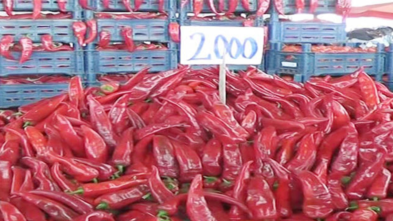 Kırmızılığı ve uzunluğundan ayırt edilebilen ünlü Bursa kaypa biberi Kırşehir pazaryerinde tezgahlarda yerini aldı.
