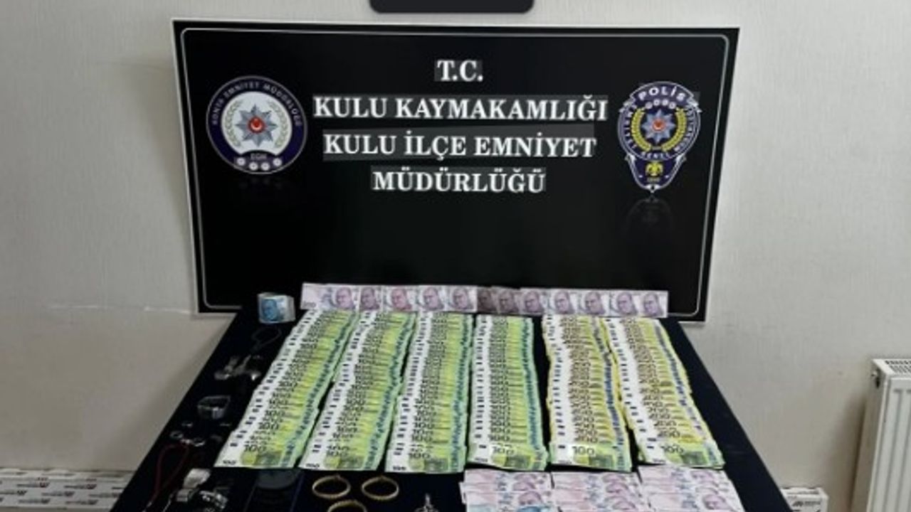 Konya’nın Kulu ilçesinde 22 Aralık tarihinde iş yeri, bir kurum ve bir evden hırsızlık yaptığı belirlenen Ö.T, polis ekiplerinin çalışmaları sonucunda Aksaray’da kaldığı otelde yakalandı. Zanlının kaldığı otelde gözaltına alınmasının ardından yapılan aramada çantasında üç adet bilezik, 27 bin 550 avro, 8 bin 235 Türk Lirası ve çaldığı otomobile ait anahtar ele geçirildi. Gözaltına alınan şüpheli, işlemlerinin tamamlanması için Kulu İlçe Emniyet Müdürlüğüne getirildi. Buradaki sorgusunun ardından adliyeye sevk edilen Ö.T, çıkarıldığı nöbetçi hakimlikçe tutuklanarak cezaevine gönderildi. Olay, hem Konya hem de Aksaray’da güvenlik güçlerinin koordineli çalışmasıyla sonuçlanırken, ele geçirilen ziynet eşyaları ve paralar soruşturma kapsamında incelenmek üzere emniyet birimlerine teslim edildi.