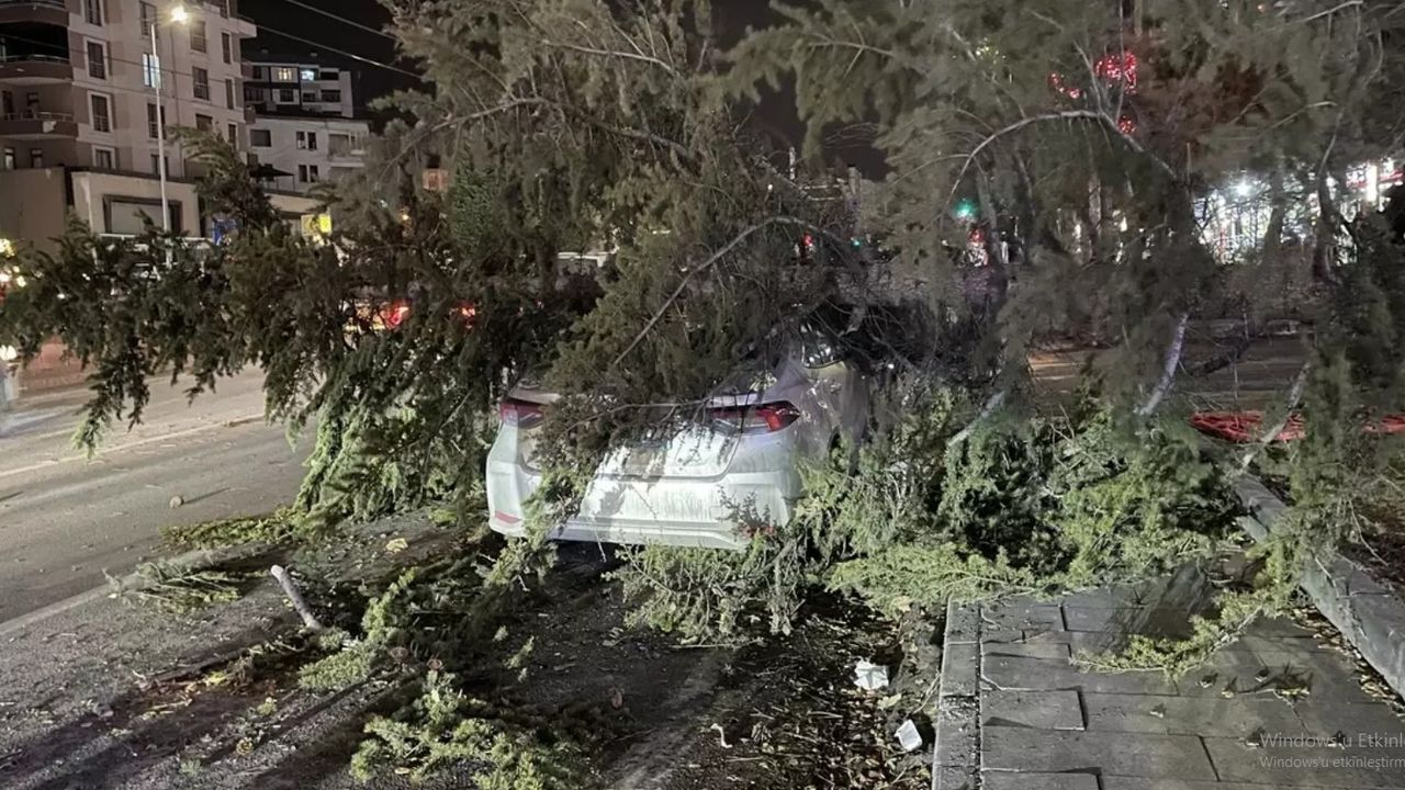 Kayseri'nin Talas ilçesinde şiddetli rüzgar nedeniyle üzerine ağaç devrilen otomobilde hasar oluştu.