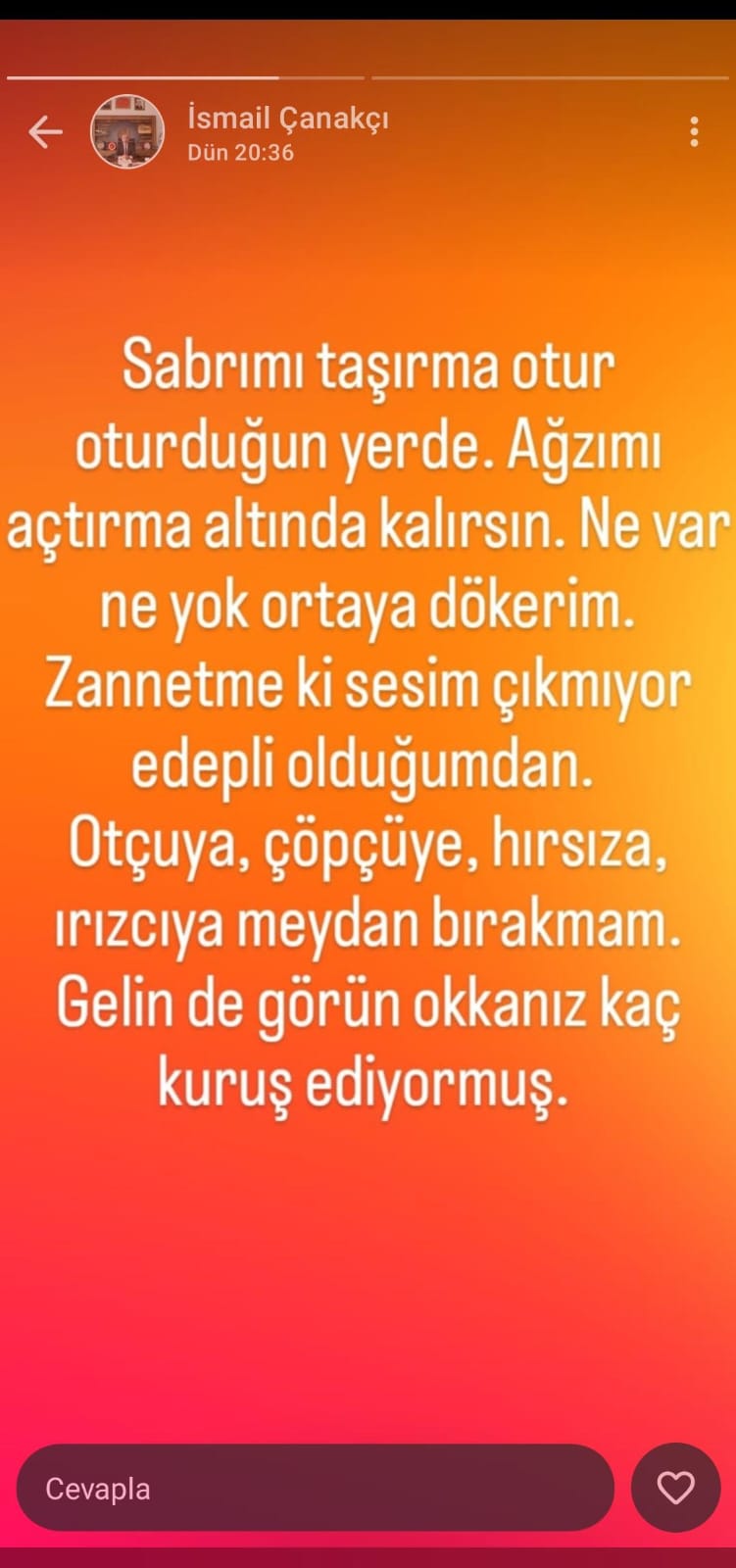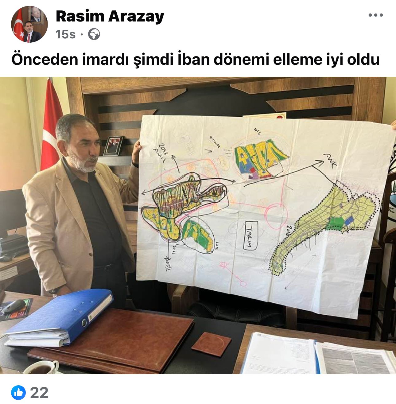 Özbağ eski Belediye Başkanı Rasim Arazay'ın "Bitti sanmayın sakın mevzu yeni başlıyor" ve "Önceden imardı, şimdi iban dönemi elleme iyi oldu" paylaşımının hemen ardından Büyük Birlik Partisi'nin Özbağ Belediye Başkanı İsmail Çanakçı da "Otur oturduğun yerde. Ağzımı açtırma altında kalırsın. Ne var ne yok ortaya dökerim. Zannetme ki sesim çıkmıyor edepli olduğumdan. Otçuya, çöpçüye, hırsıza, ırızcıya meydan bırakmam. Gelin de görün okkanız kaç kuruş ediyormuş" dedi.