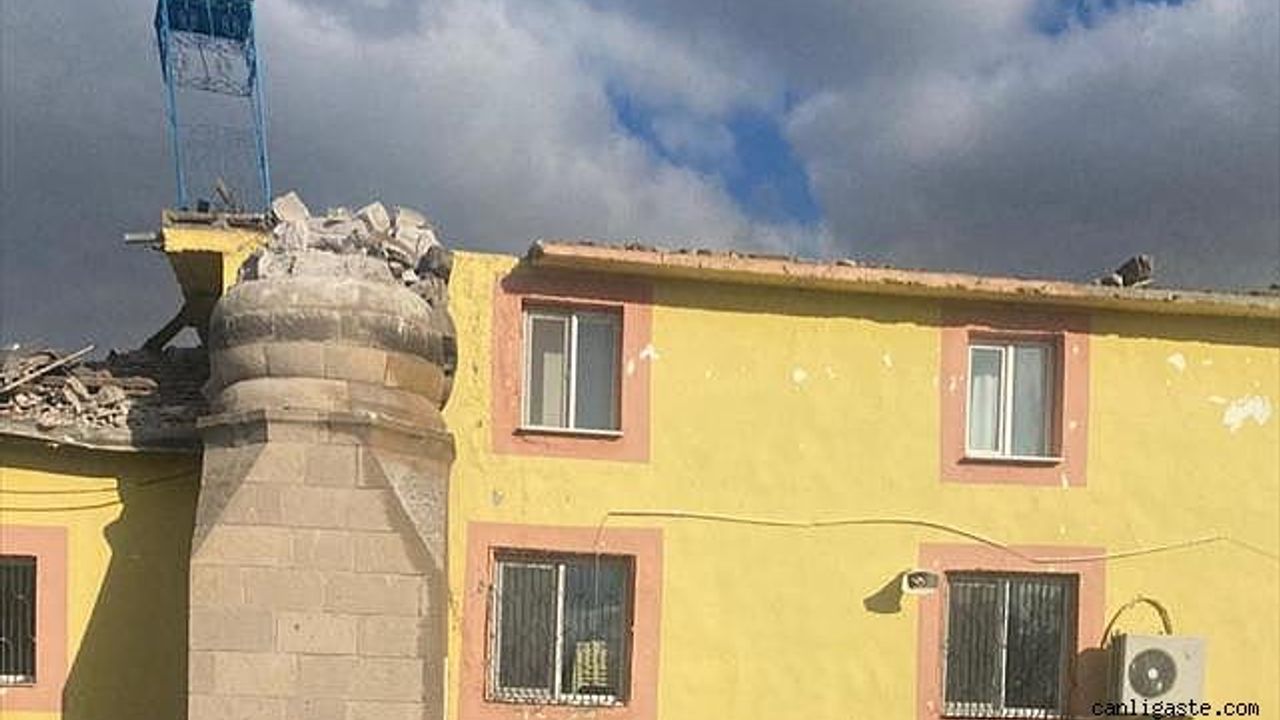 Şiddetli rüzgardan dolayı hasar alan minare, belediye ekipleri tarafından kontrollü şekilde yıkıldı.