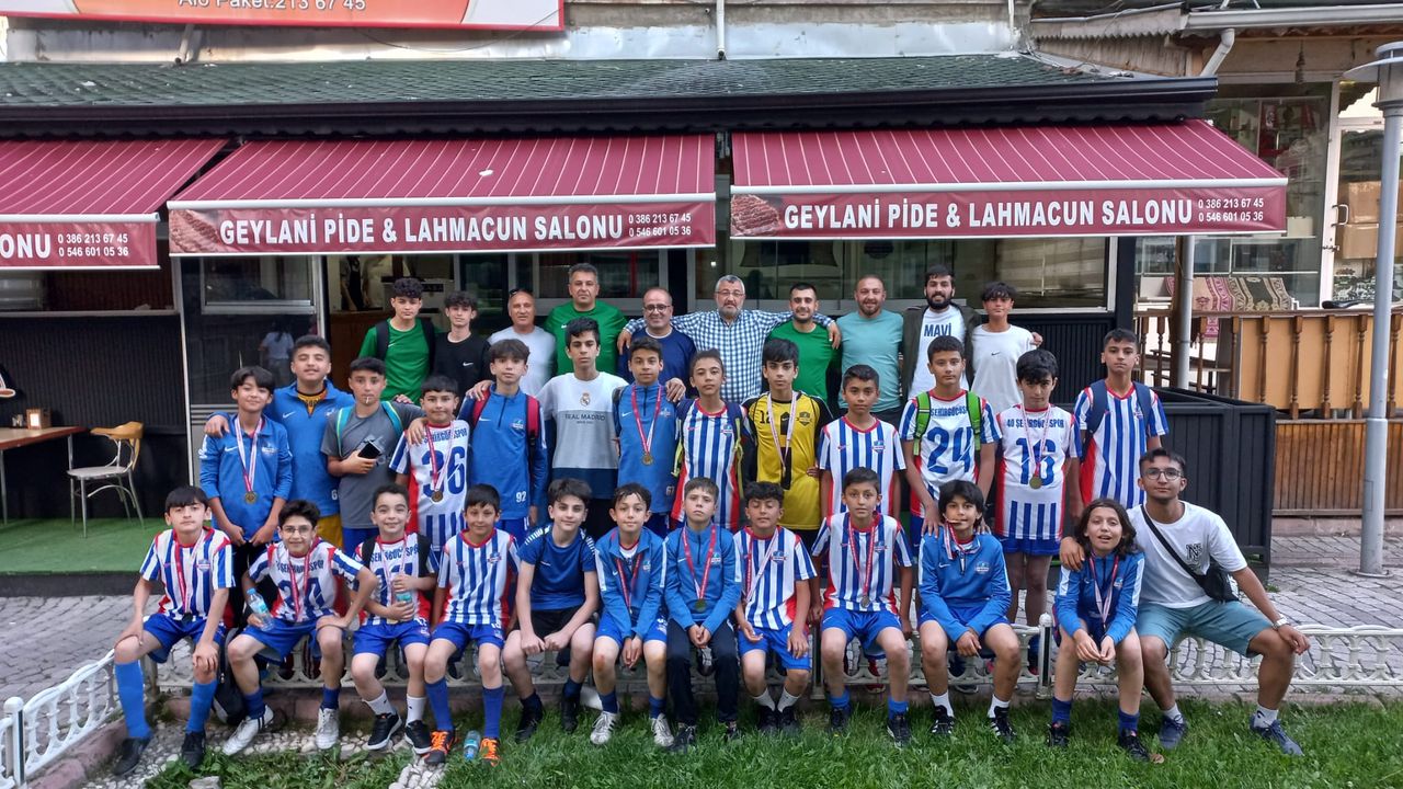 KIRŞEHİR'DE 5 takımı çift devreli lig usulüne göre mücadele edildiği U13 Gençler Ligi'nde oynadığı 8 maçın 7’sini kazanarak şampiyon olan 40 Şehirgücüspor takımına Geylani Pide Fırını sahibi Enver Durdu şampiyonluğun ardından yemek ikramını bulundu.