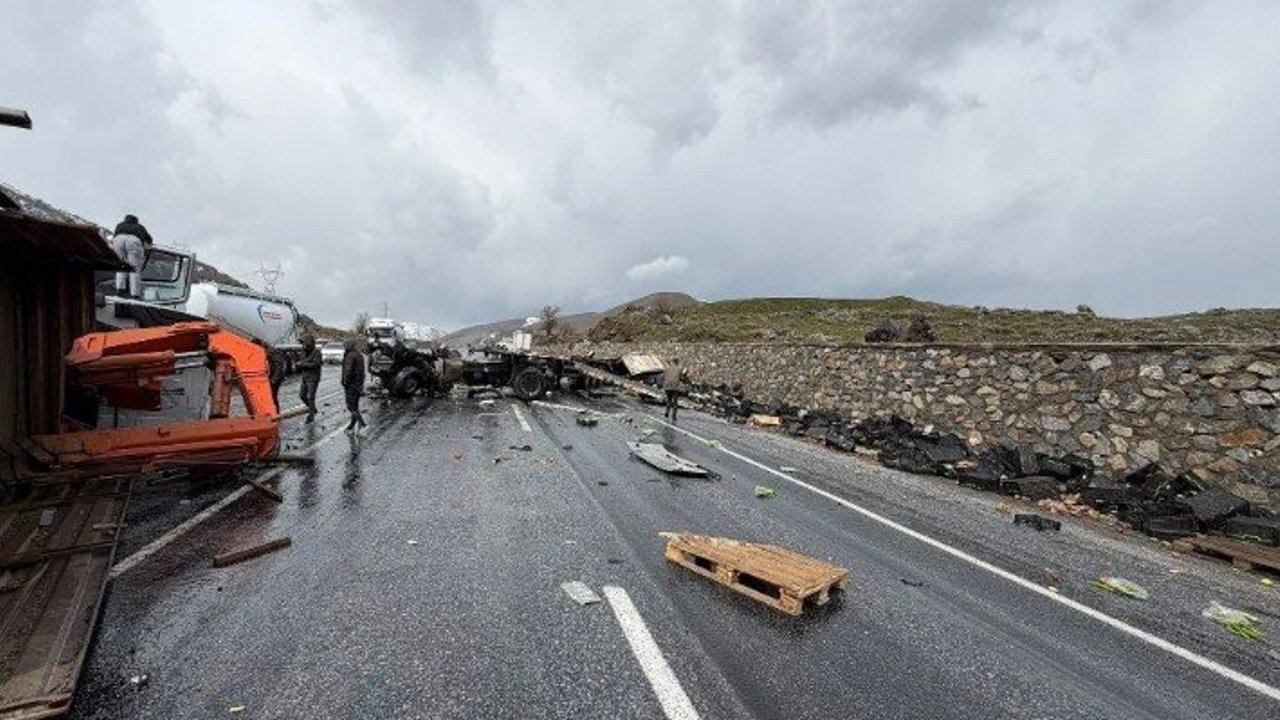 Bitlis'in Tatvan ilçesi Tatvan-Van kara yolunun Bolalan köyü yakınlarında sürücüleri ve plakaları öğrenilemeyen sebze yüklü tır ile iş makinesi (vinç donanımlı yol bakım aracı) çarpıştı.
