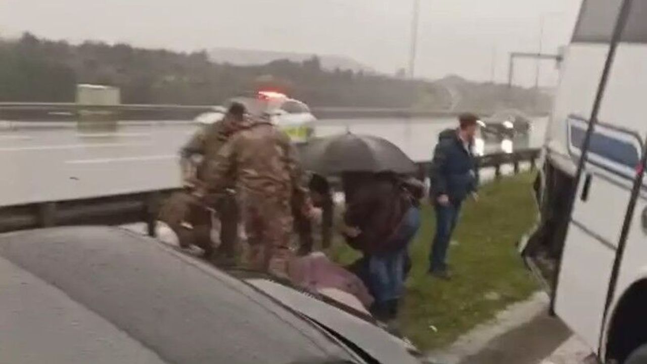 Servis minibüsü bariyerlere çarparak durabilirken otomobil refüje düştü. İhbar üzerine olay yerine çok sayıda itfaiye, sağlık ve polis ekibi sevk edildi. İlk belirlemelere göre bir polis memurunun şehit olduğu duyurulmuş, 16 polis memurunun ise yaralandığı aktarılmıştı.