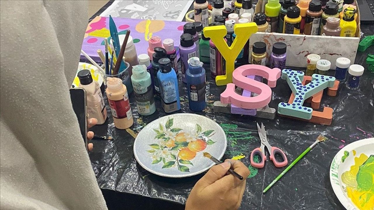 Adana'da bağımlılıkla mücadele edenlere yardım eli uzatılan Yeşilay Danışmanlık Merkezinde (YEDAM), danışanların hobi edinmesi ve sosyalleşmesi için el sanatları kursları da düzenleniyor.