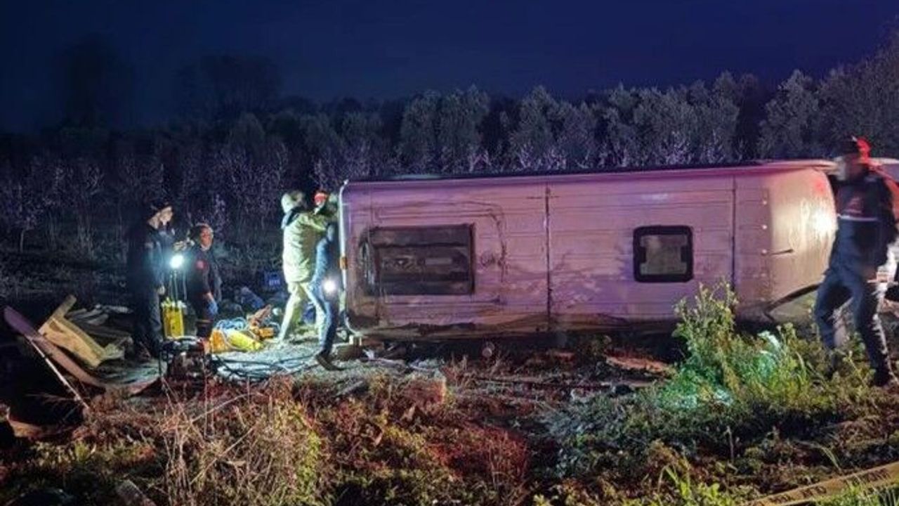 Sürücünün direksiyon hakimiyetini kaybetmesi sonucu meydana gelen kazada minibüs yolun sol tarafına devrildi. 12 kişi yaralanırken, 1 kişinin aracın altında kalarak olay yerinde hayatını kaybettiği tespit edildi. İhbar üzerine olay yerine sağlık, jandarma ve itfaiye ekipleri sevk edildi.